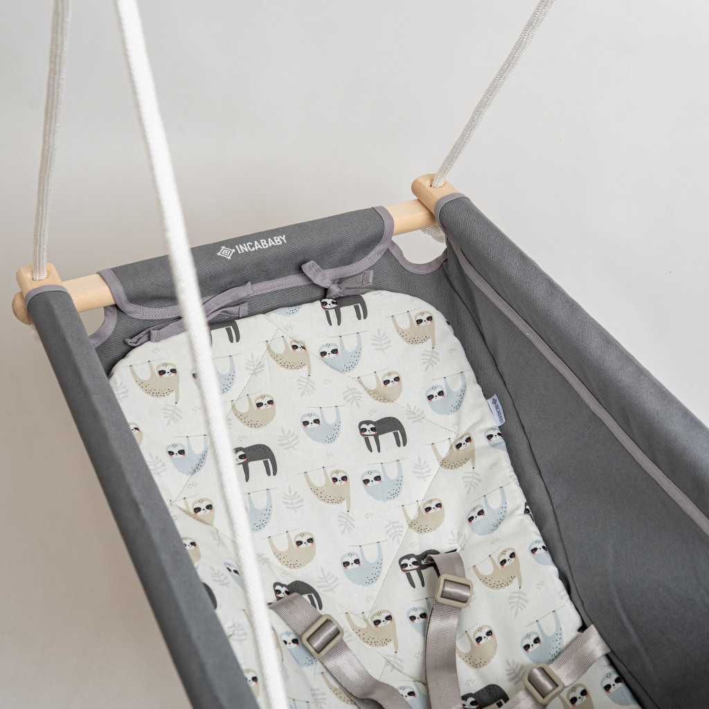 The Incababy Comfort baby swing ensures your little one's maximum safety with its built-in 5-point safety harness. Important: the safety harness is standard equipment for the swing, so there is no need to purchase it separately. With skill-developing beechwood beads and a cube, and a stylish - cut-out rhombus-shaped beechwood spacer.