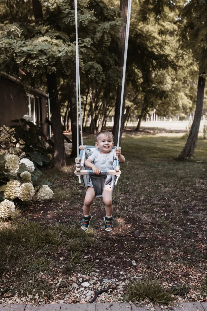 The inside of the swing is provided with a comfortable, removable and washable cushion ensures support for the child's back and neck.